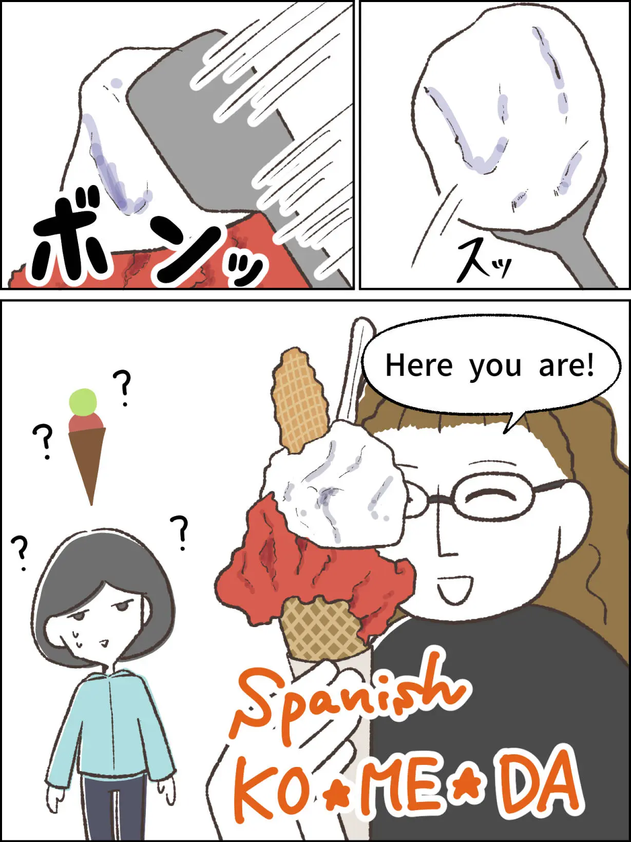 メニュー表のイラストからてっきりサーティーワンのような2段重ねアイスを想像していたら、超ヘビー級ダブルジェラートが提供された。店名もしかして「コメダ」だった?