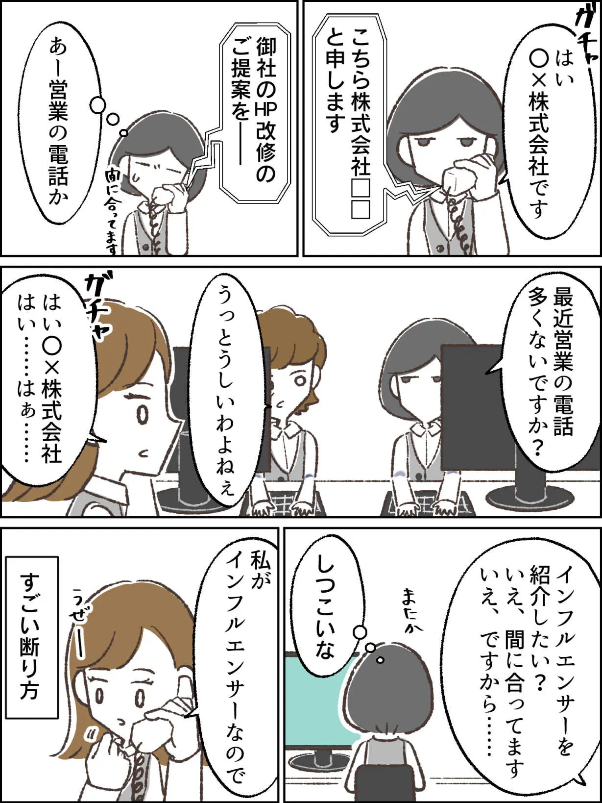 営業所にこの手の電話をめちゃくちゃうまくいなす人がいる。声を荒げるわけでもなく、冷たい態度をとるわけでもない。でも相手がこれ以上は何も言えない一言をさらっと放つのだ。