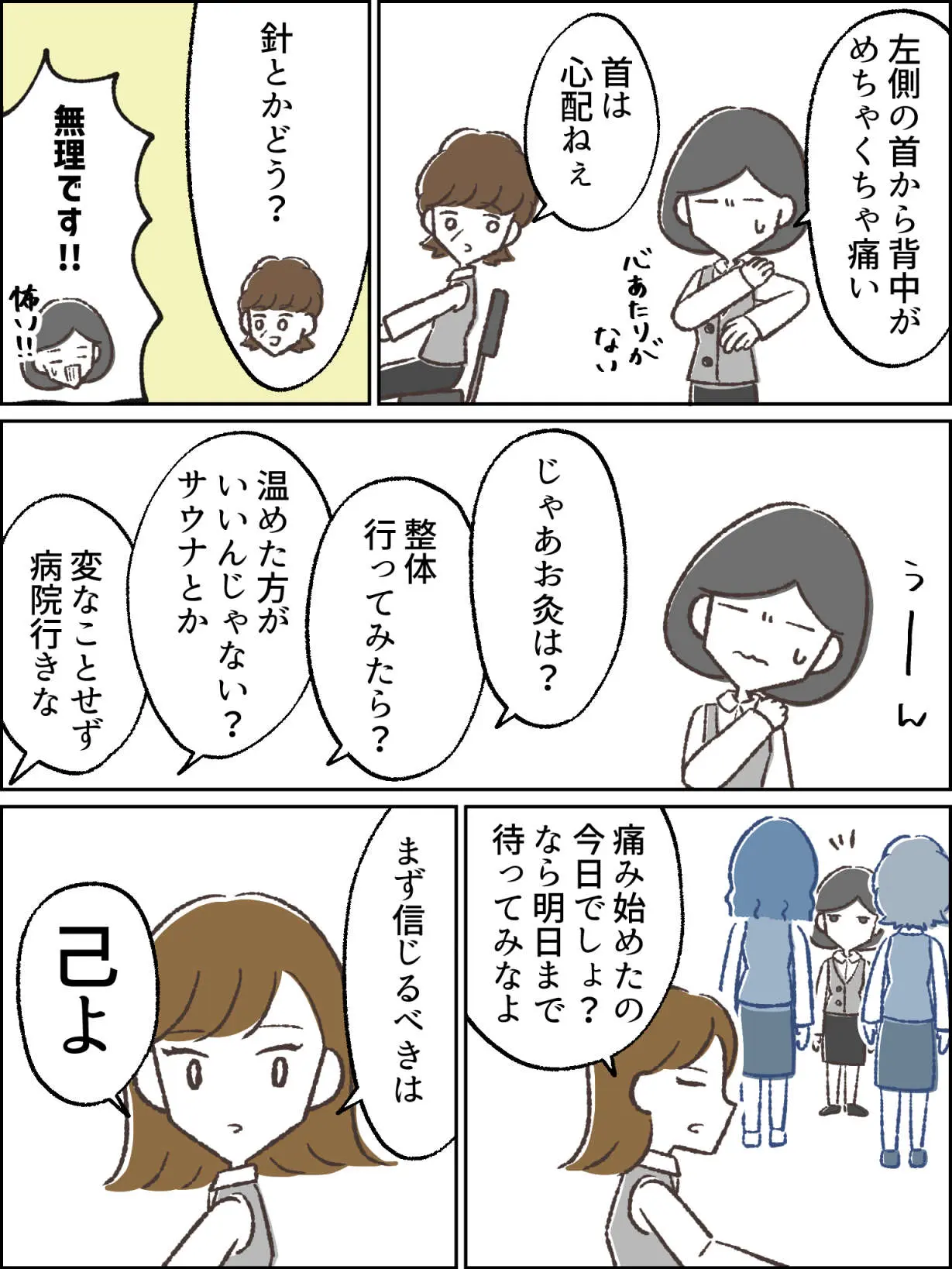 なんてことを考えたのだった。ちなみに先輩に言われた通り自分を信じたら翌日には痛みが引いていた。自分の自然治癒力舐めたもんじゃない。ありがとう、先輩。