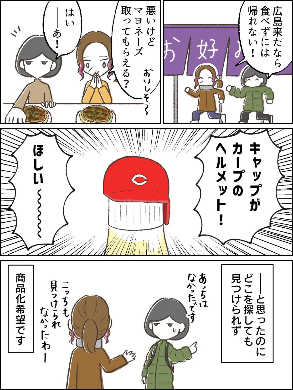 ただし、実はもっと欲しいと思ったお土産がある。それがお好み屋さんにあったカープのヘルメットをかぶったマヨネーズ!