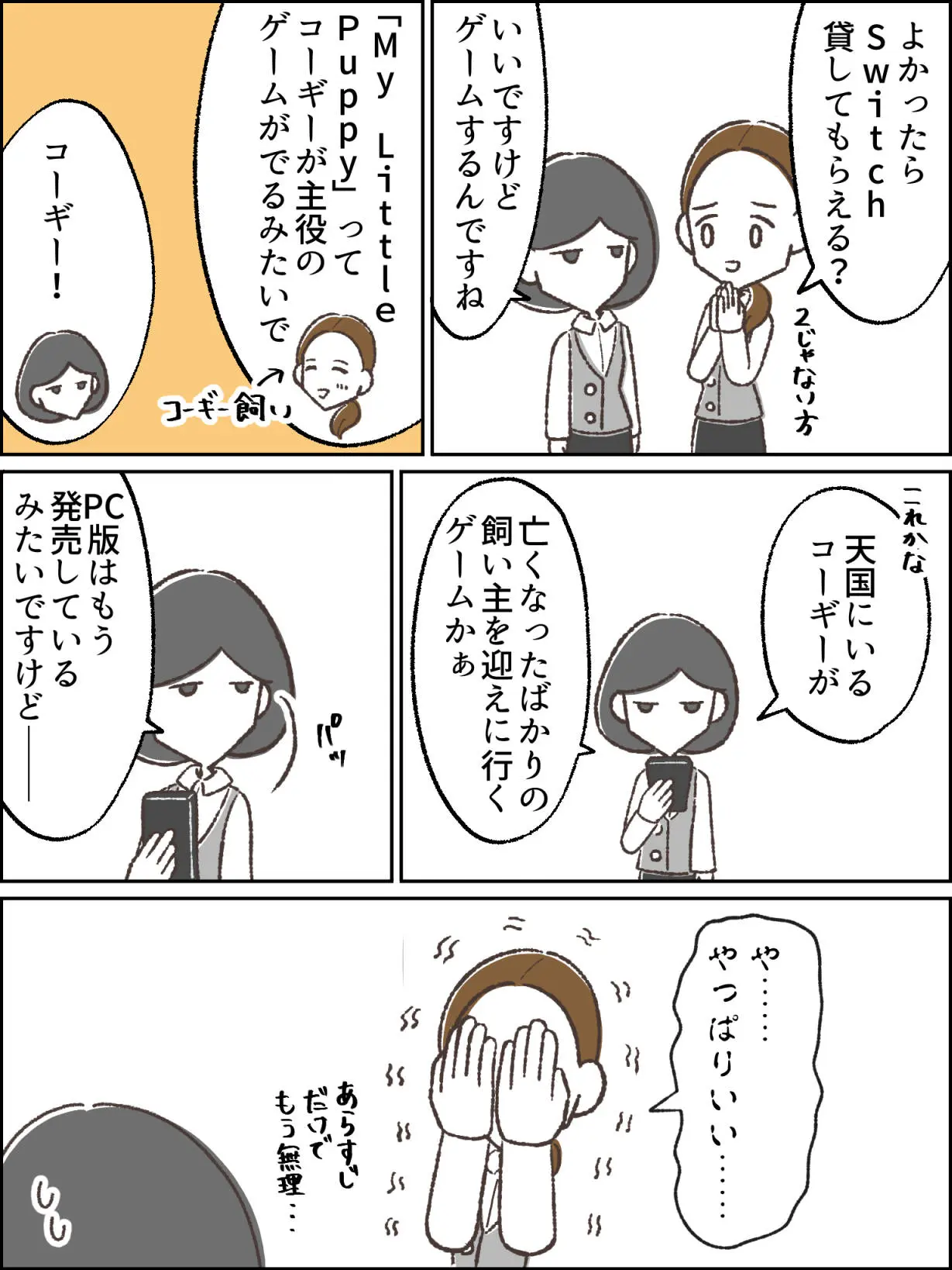 と思っていたら、コーギーが主人公のゲームがリリースされるらしく、それをやってみたいというのだ。この先輩はコーギーを飼っている。